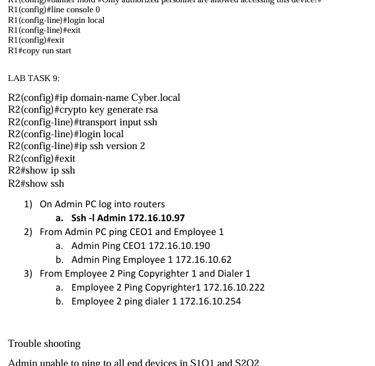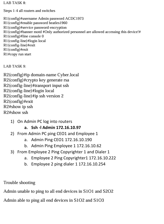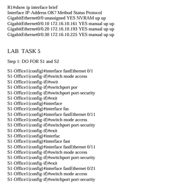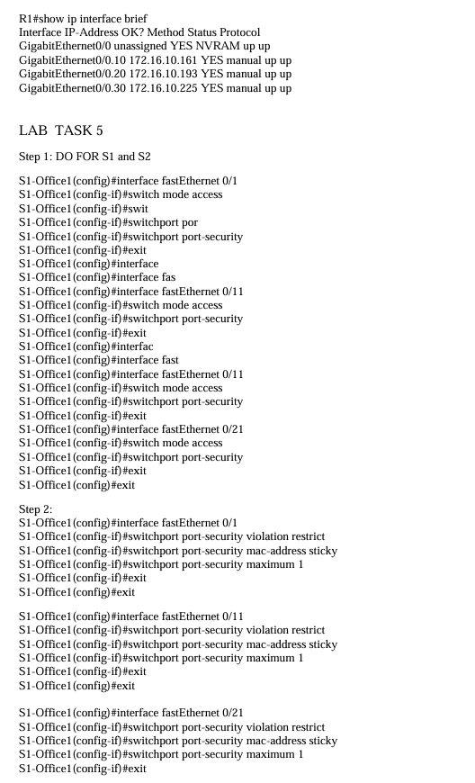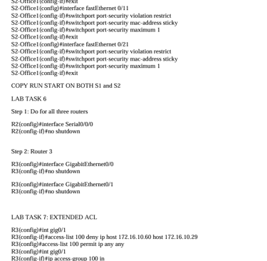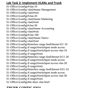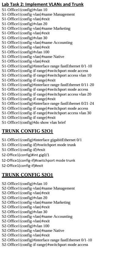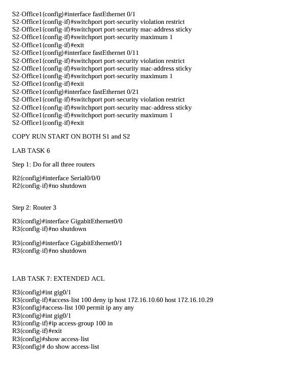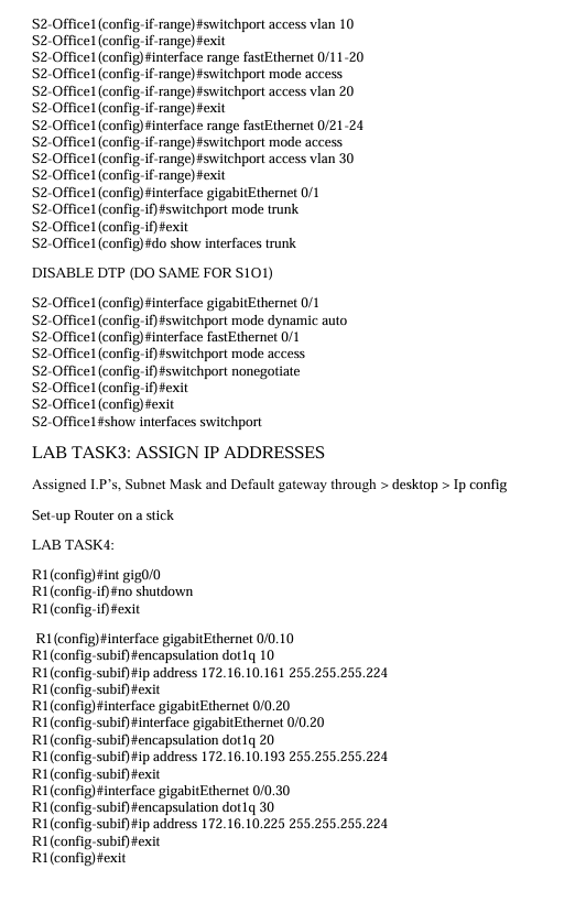 Below is the path I took to configure the following tasks and setting up the office network, ended completing 95% of the lab on packet tracer but seemed I couldn't get the routers to connect, will definitely keep at it