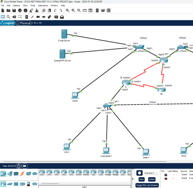 Decided to set-up a whole office network with Cisco Packet Tracer, configuring work stations, switches, routers, printers, and configuring trunking protocols, port security, setting up VLANs, Subnetting networks etc..